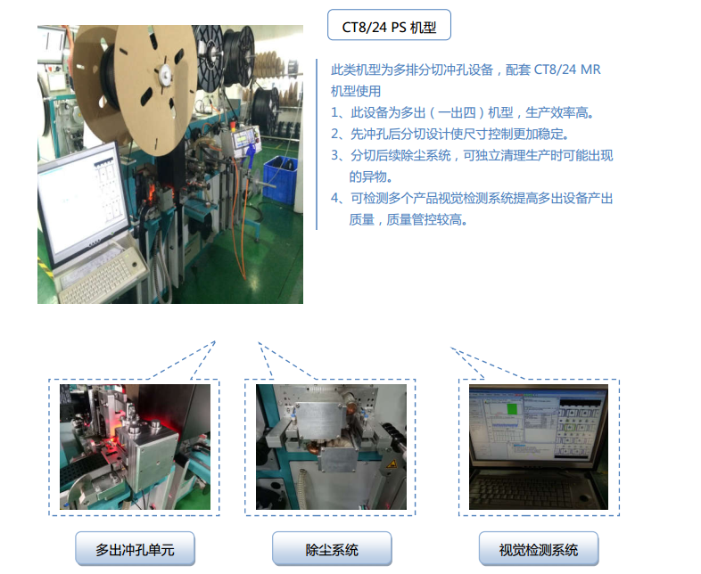 CT8/24 MR型设备即多出载带成型设备,可生产8~24mm宽载带。最高可生产1000M/H。